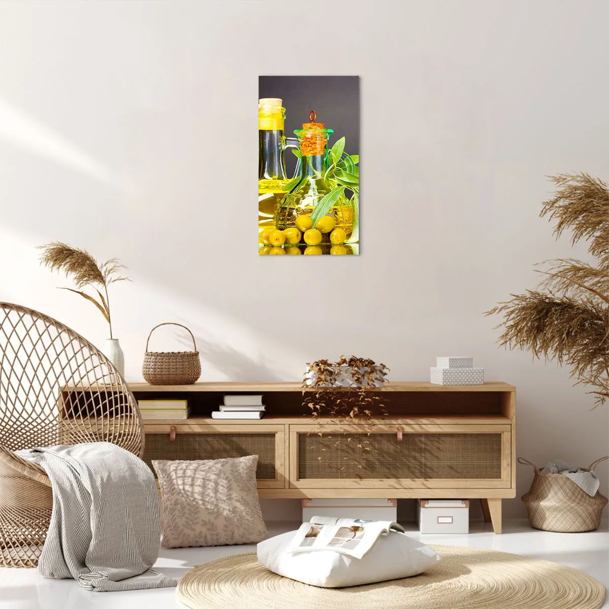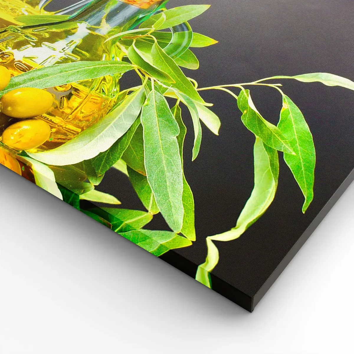 Canvas picture - Still Life with Olives and Olive Oil - 45x80 cm