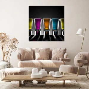 The motif of colorful glasses symbolizes modernity, elegance, and style. The painting inspires an atmosphere of luxury and fun, giving the room a unique character. It's an excellent choice for lovers of contemporary art, photography, and modern decorative forms.