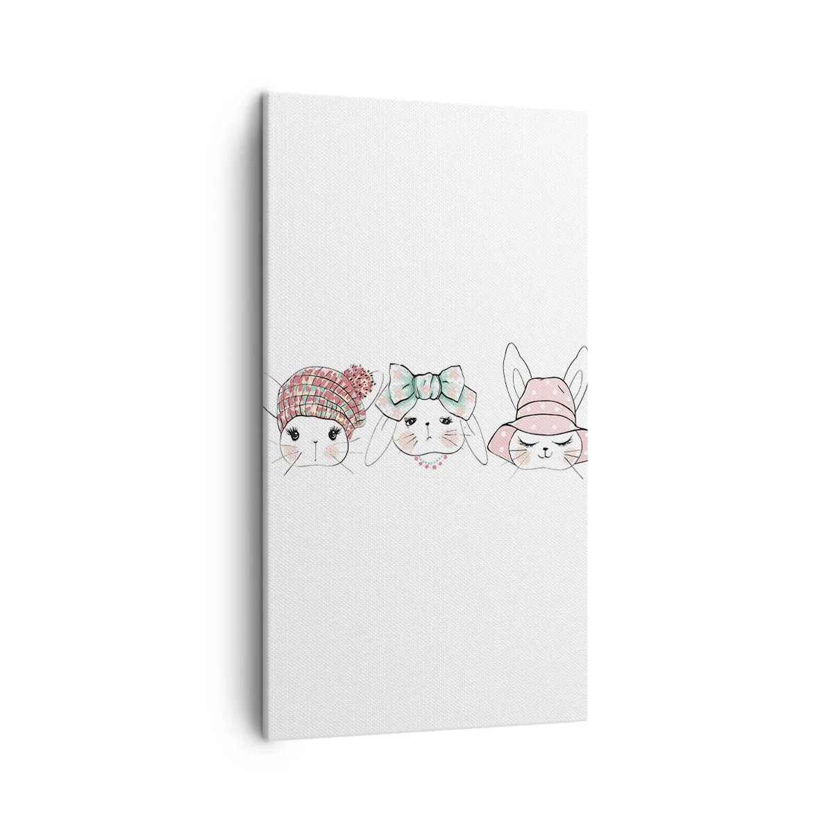 The canvas is stretched over the frame. The sides and edges of the picture are printed to form a continuation of the image. The painting is ready to hang on the wall. Each product comes with a hanger attached to the frame and a mounting kit (screw + wall plug).