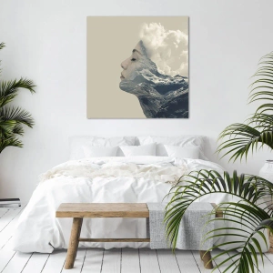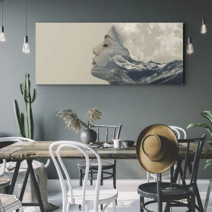 "Beauty of the Elements" is a unique painting on canvas that delights with its artistic concept and elegance. It presents a double exposure - the silhouette of a woman, incorporating a landscape of majestic mountains and clouds. The combination of nature and the human form creates an inspiring composition that attracts the eye.