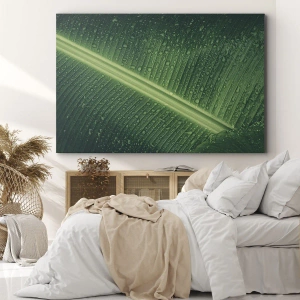 Green Structure is a painting that shows the beauty of nature in its purest form. A green leaf, covered with water drops, attracts attention with its details and natural charm. This tropical motif perfectly captures the freshness and harmony of nature, introducing these elements into interiors.