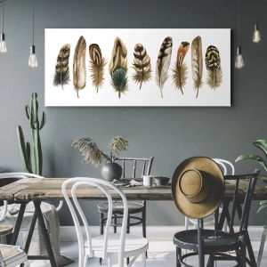 The canvas is stretched over the frame. The sides and edges of the picture are printed to form a continuation of the image. The painting is ready to hang on the wall. Each product comes with a hanger attached to the frame and a mounting kit (screw + wall plug).