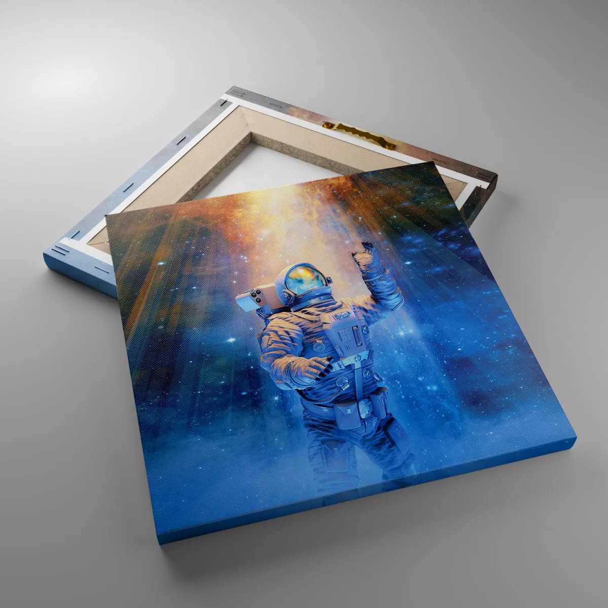The canvas is stretched over the frame. The sides and edges of the picture are printed to form a continuation of the image. The painting is ready to hang on the wall. Each product comes with a hanger attached to the frame and a mounting kit (screw + wall plug).