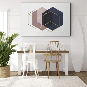 Canvas picture - Geometric shapes in golden lines on a pastel background - 70x50cm - Power of Simplicity - Modern wall decoration for the living room and bedroom ARTTOR