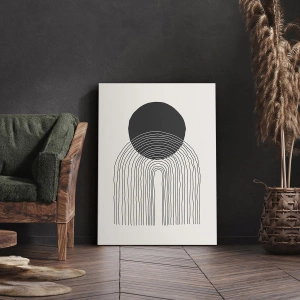 - This painting features an abstract pattern with lines and a black circle on a light background. Perfect for modern and minimalist interiors. The canvas print measures 70x50 cm.
