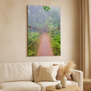 The hanging bridge is a symbol of travel, discovery, and adventure. Its delicate structure, combined with the surrounding lush vegetation, brings a unique atmosphere of peace and relaxation to the room. This work of art delights not only nature lovers but also those seeking inspiration in landscape art.