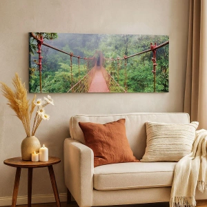 - The painting depicts a suspension bridge in a tropical jungle shrouded in mist. The exotic landscape and natural harmony create a unique atmosphere in the interior.