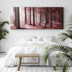 The forest motif symbolizes peace, relaxation, and harmony with the surrounding nature. The red hues add a unique touch to the image, drawing the eye and creating an atmosphere of warmth and sophistication. This work of art blends seamlessly with a variety of interior designs, adding elegance and expressiveness.