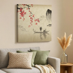 • Landscape, Japan, Fisherman, Landscapes, People, Nature, Art, For the office, For the study, For the dining room, For the hall, For the living room, For the bedroom, Brown, Red, Gray, Horizontal