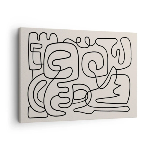 Canvas picture - Abstract line art pattern in black on a light background - 70x50cm - Tracing - Modern wall decoration for the living room and bedroom ARTTOR