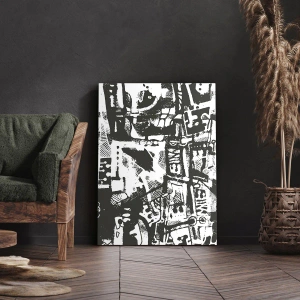 Wall art - Order or chaos? - Abstract monochrome pattern in retro style