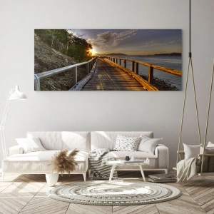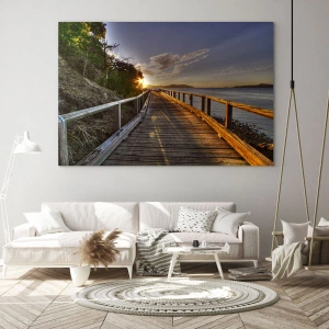 Glass picture - Wooden footbridge at sunset - 70x50cm - Walking towards the Sun - Modern wall decoration for the living room and bedroom ARTTOR