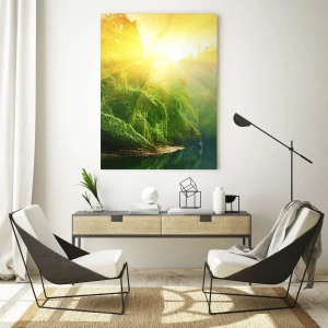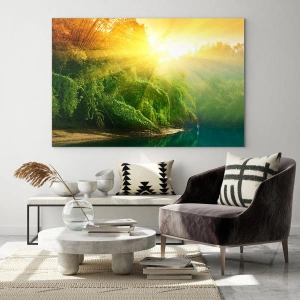 Glass picture - Sun rays over the green vegetation by the river - 70x50cm - Drowning in the Sun and Shadow - Modern wall decoration for the living room and bedroom ARTTOR
