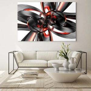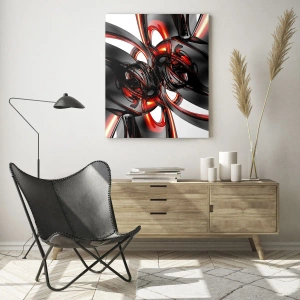 Glass picture - Movement in Graphite and Red - 140x50 cm