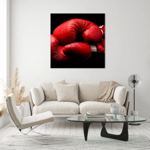 Glass picture - Red boxing gloves on a black background - 70x50cm - Fight Emotions Are Behind Us - Modern wall decoration for the living room and bedroom ARTTOR