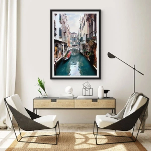 - This poster depicts a Venice canal with a gondola and bridge. A romantic motif that brings the elegance and charm of Italian architecture to the interior.