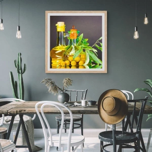 Poster in light oak frame - Still Life with Olives and Olive Oil - 60x60 cm