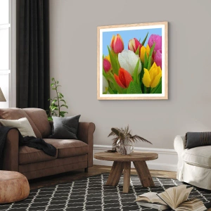 Poster in light oak frame - Floral Rainbow in Dew Drops - 30x40 cm