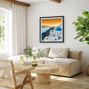 Poster in black frame - Santorini - Snuggling up to the Rocks - 50x50 cm