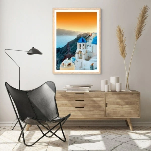 Poster in light oak frame - Santorini - Snuggling up to the Rocks - 40x30 cm