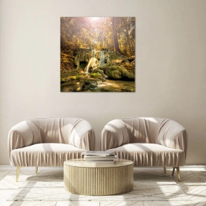 Glass picture - Forest Cascade in Green - 40x40 cm