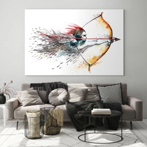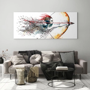 Glass picture - Archer in a dynamic watercolor setting - 70x50cm - Mythical Warrior with a Fiery Bow - Modern wall decoration for the living room and bedroom ARTTOR