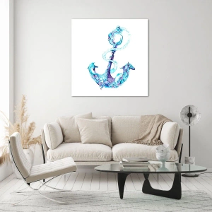 Glass picture - Anchor with nautical motifs in an artistic style - 70x50cm - Trustee of the Sea - Modern wall decoration for the living room and bedroom ARTTOR