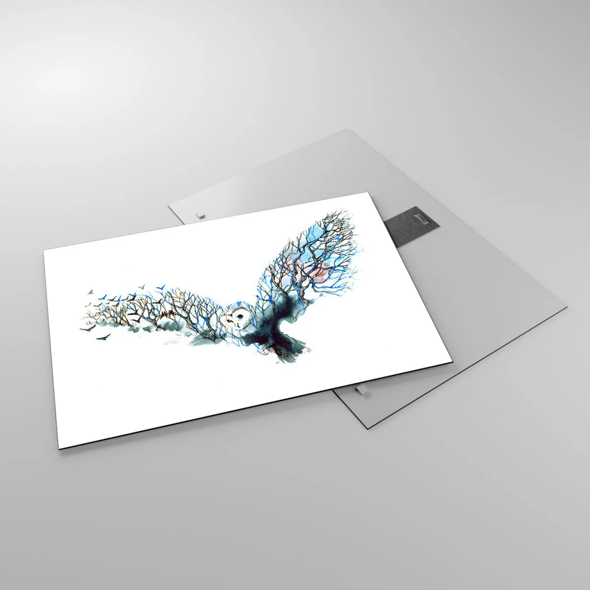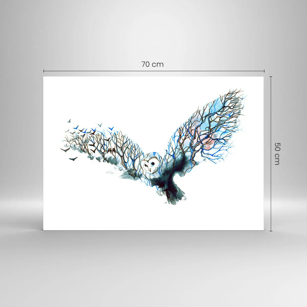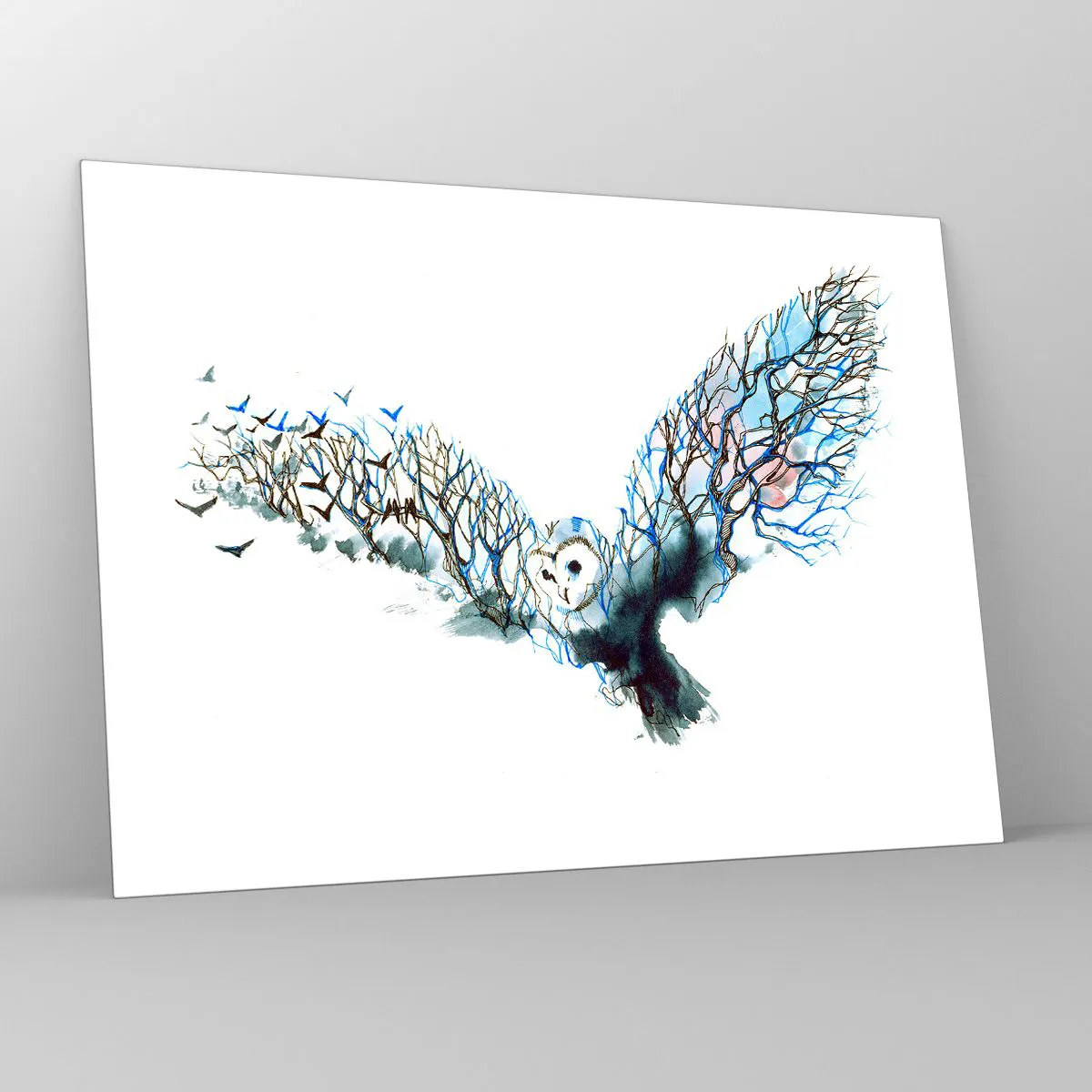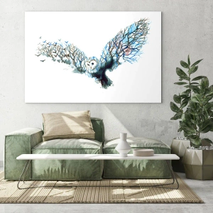 Glass picture - Illustration of an owl with branches instead of wings - 70x50cm - On Wings of a Forest - Modern wall decoration for the living room and bedroom ARTTOR