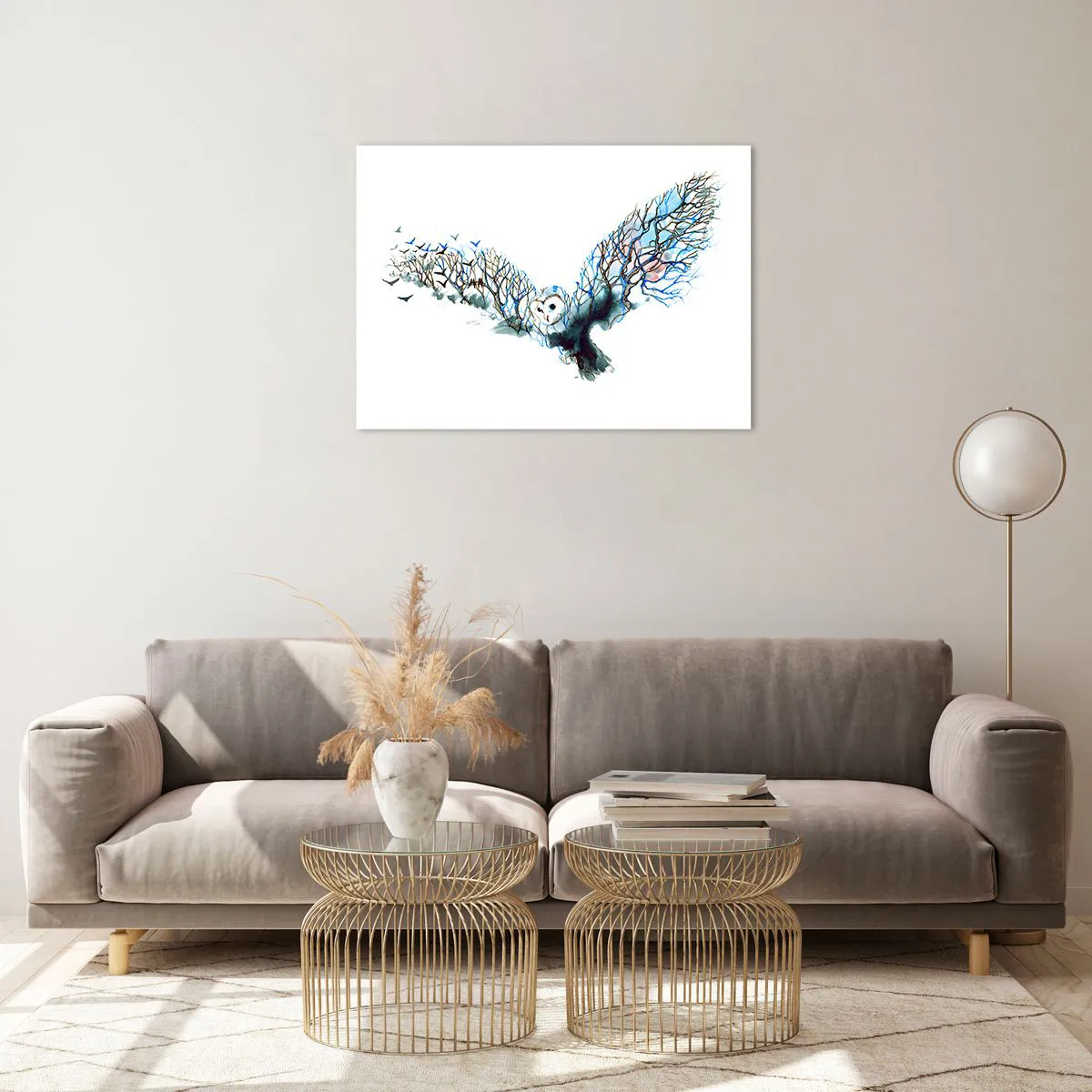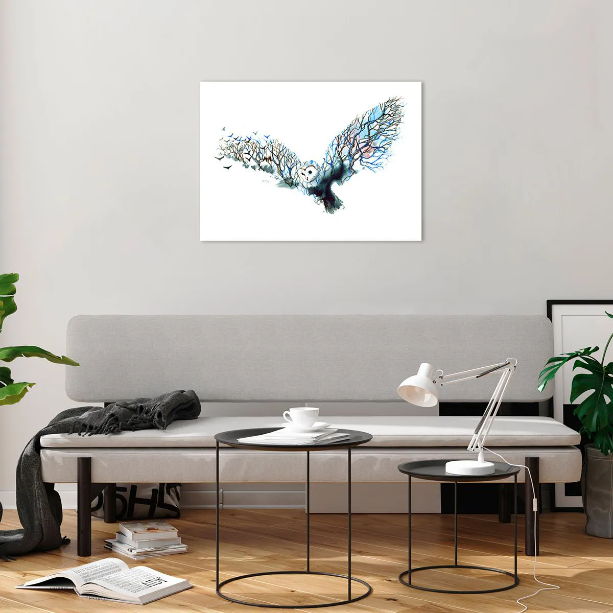 Wall painting "Illustration of an owl with branches instead of wings" - Illustration of an owl with branches instead of wings