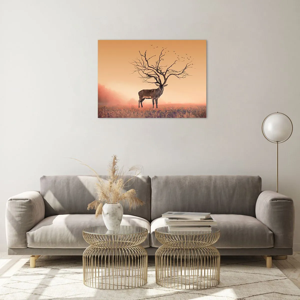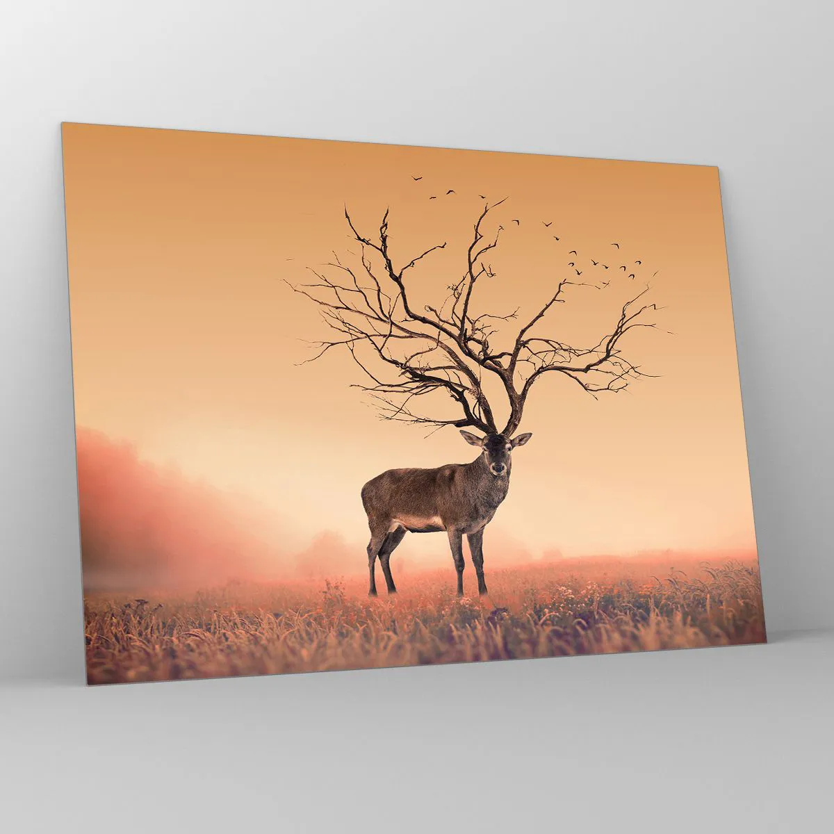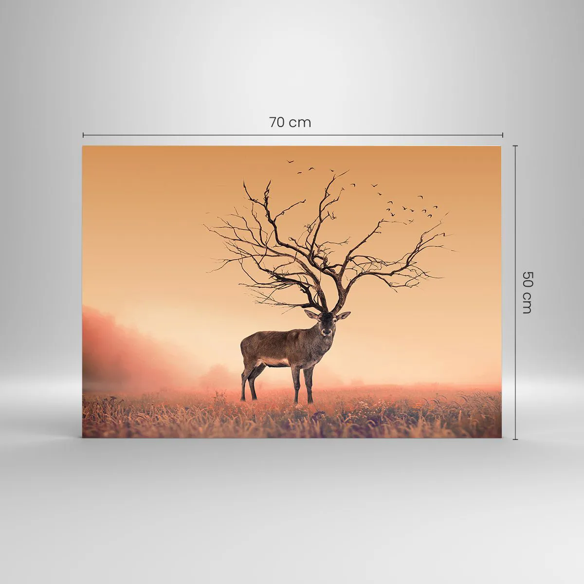 Glass picture - Illustration of a deer with a tree as its antlers - 70x50cm - Antlered Deer Spirit of the Forest - Modern wall decoration for the living room and bedroom ARTTOR