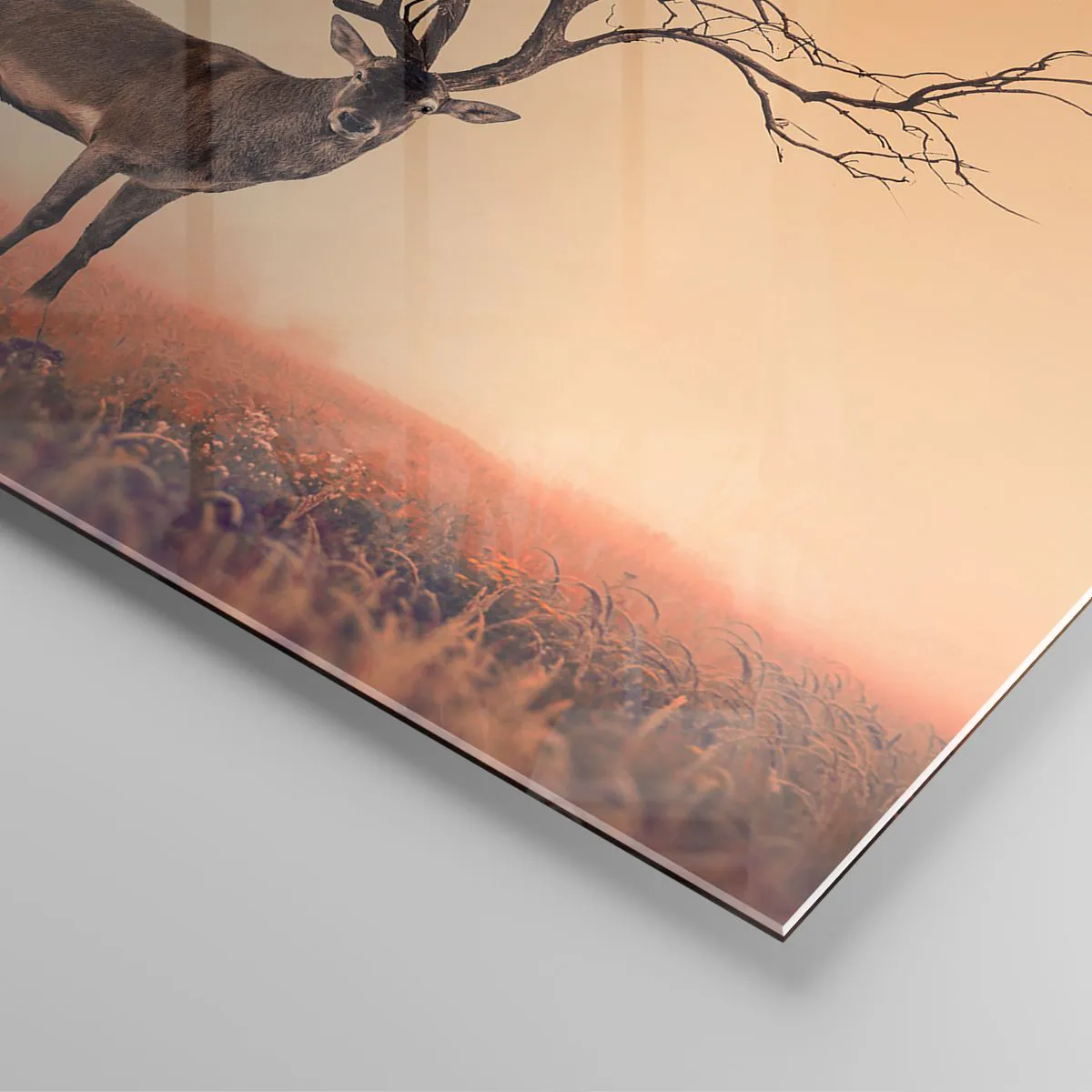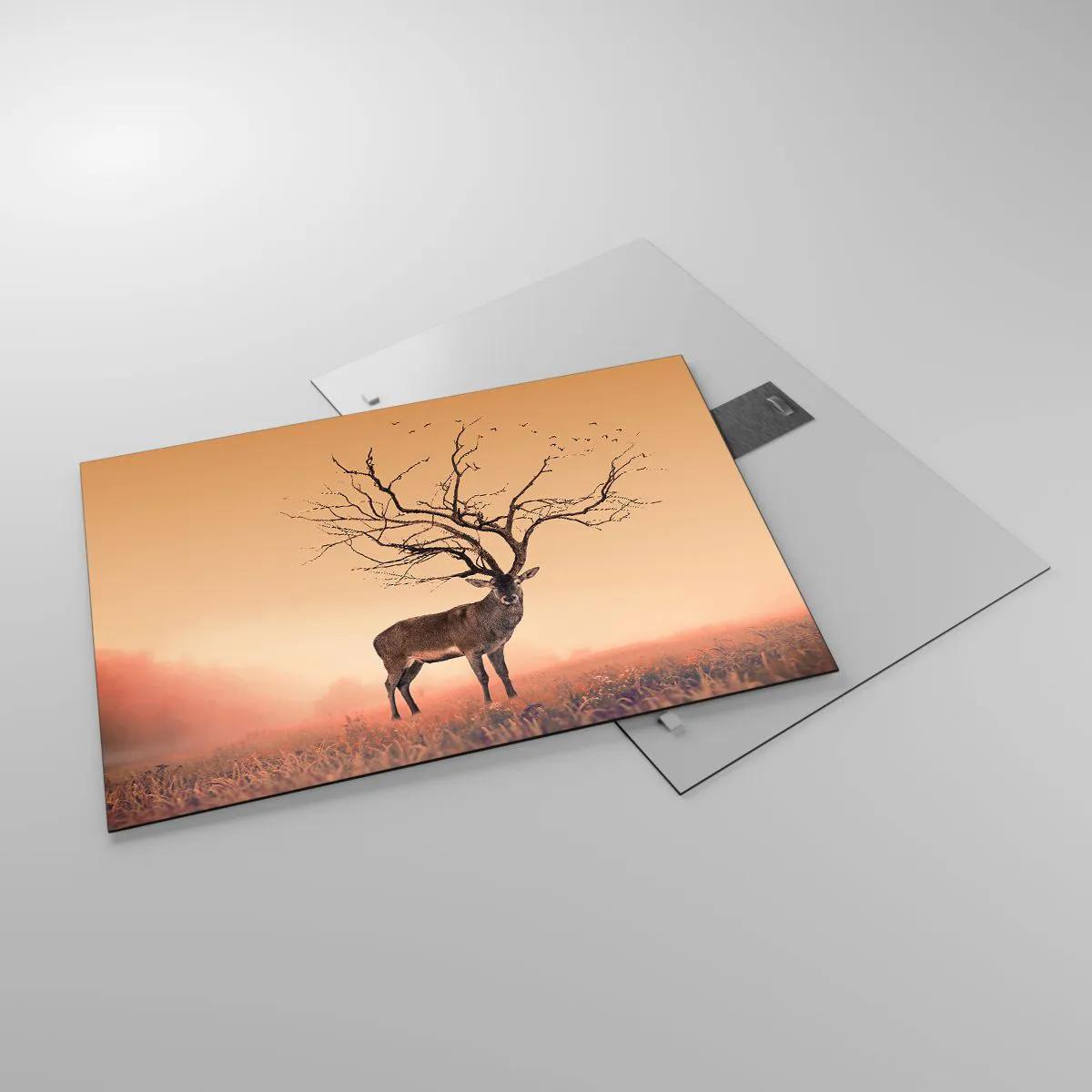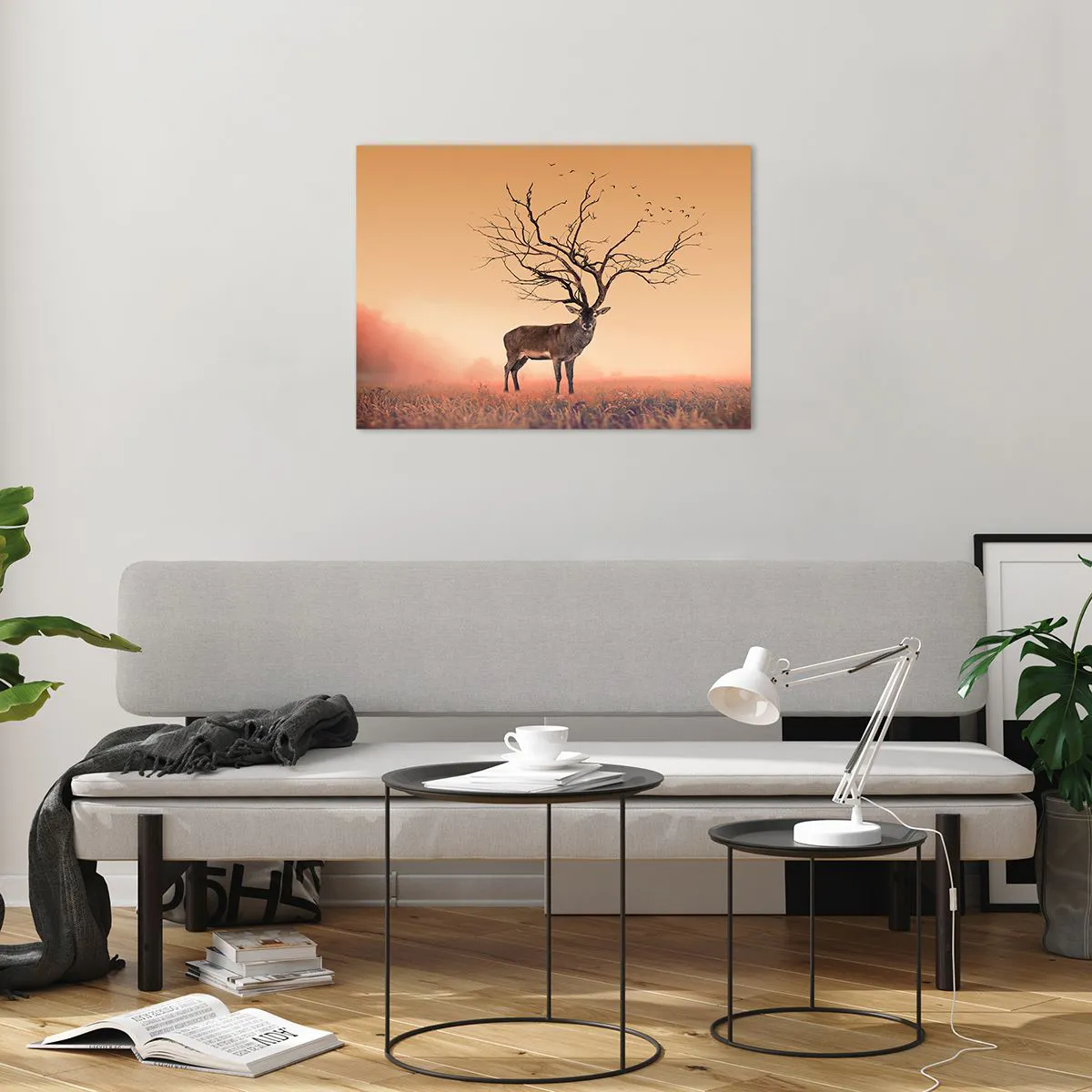 Glass picture - Illustration of a deer with a tree as its antlers - 70x50cm - Antlered Deer Spirit of the Forest - Modern wall decoration for the living room and bedroom ARTTOR