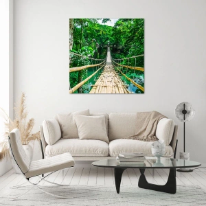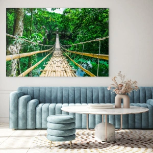 This painting is an excellent choice for those who want to infuse an atmosphere of adventure and exoticism into their interior. The green shades of leaves and reflections of water will bring harmony and a relaxing atmosphere to rooms such as the living room, bedroom, or office space. The hanging bridge symbolizes not only travel, but also the discovery of new possibilities and the connection of distant worlds.