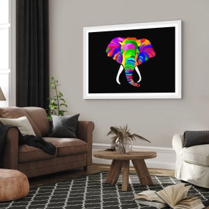 Poster in white frmae - Elephant That Enjoyed Rainbow Bath - 60x60 cm