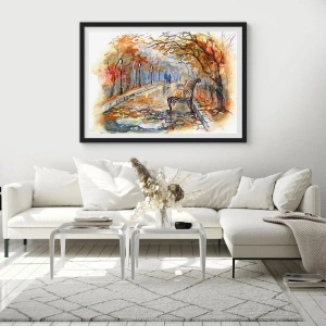 Poster in black frame - Walking together into Autumn - 50x40 cm
