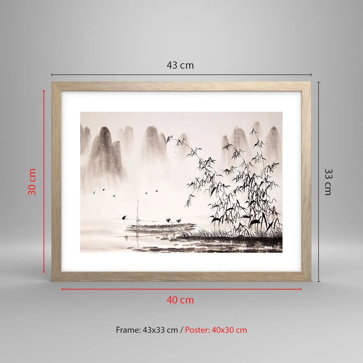 Poster in light oak frame - Quiet As a Rice Field - 40x30 cm