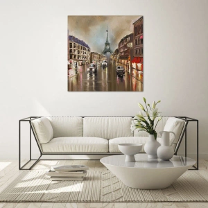 - This painting depicts an evening Parisian street with rain reflections and a view of the Eiffel Tower. Perfect for romantic or classic interiors.