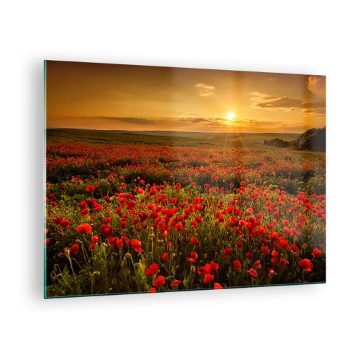 Glass picture - A field of poppies illuminated by the rays of the setting sun - 70x50cm - In the Meadow, among Flood of Flowers - Modern wall decoration for the living room and bedroom ARTTOR