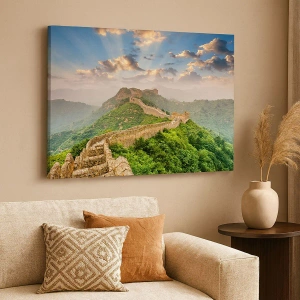 "Timeless Grandeur" is a unique 70x50 cm canvas print depicting the Great Wall of China, majestically stretching among green hills, illuminated by the gentle rays of the sun. The picturesque landscape delights with its peace and harmony, reflecting the beauty of this extraordinary place. Every detail of the wall and the play of light on the hills attracts the eye and inspires.