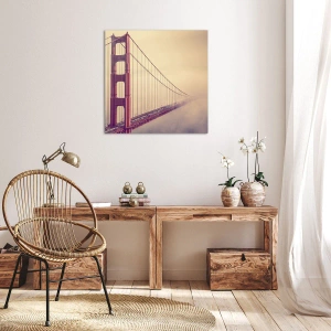 Canvas picture - A bridge in the fog in pastel shades, a symbol of elegance and peace - 70x50cm - Between Heaven and Earth - Modern wall decoration for the living room and bedroom ARTTOR