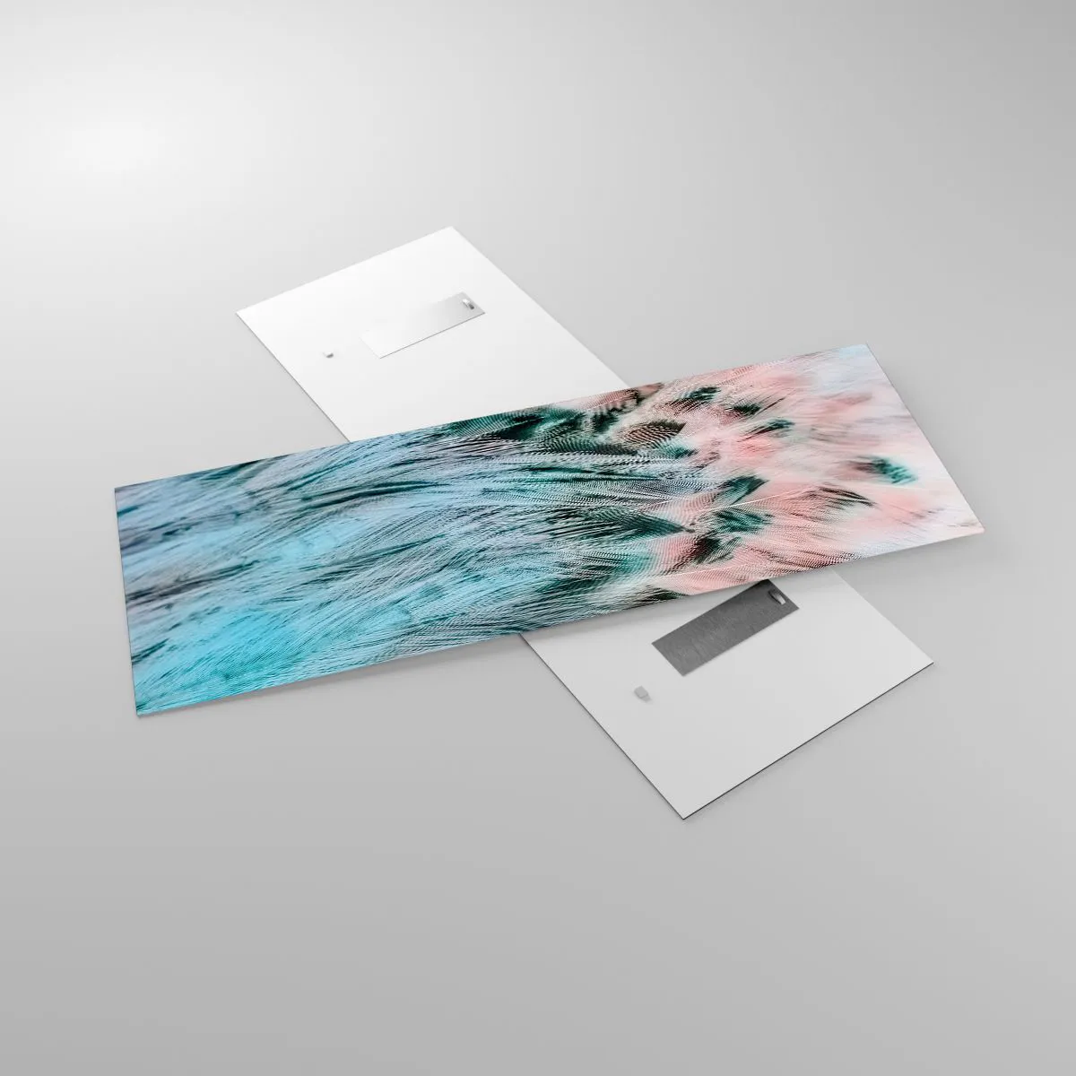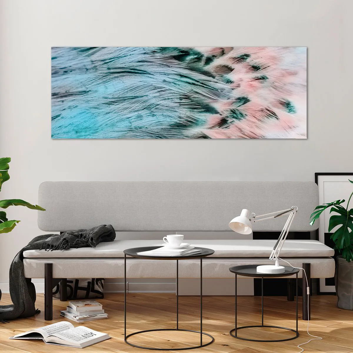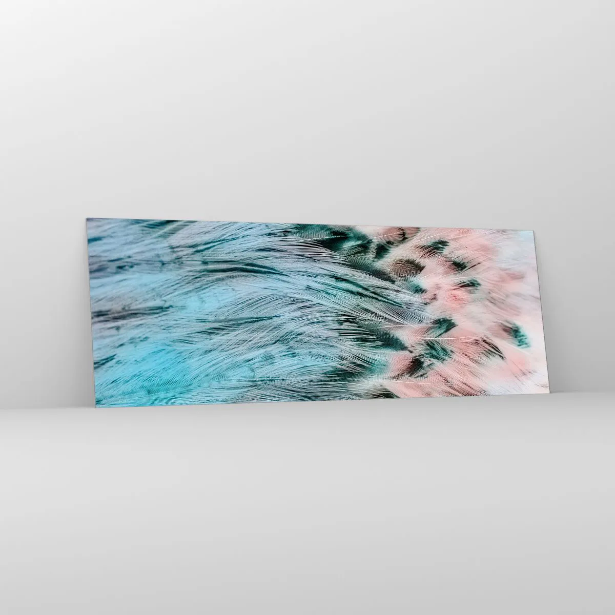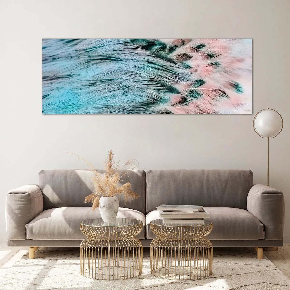 Glass picture - Sapphire and Pink Feathers - 140x50 cm