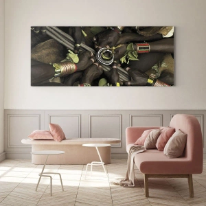 The picture was created on glass, measuring 70x50 cm in a horizontal format, which emphasizes the exceptional quality and intensity of the colors. The smooth glass surface adds elegance and a modern character, making this decoration an excellent choice for a living room, office, or relaxation space. It blends perfectly with boho, ethnic, and modern interiors.