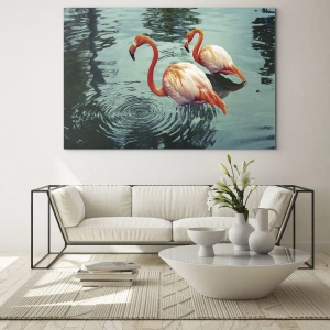 Wall art - We're in fashion now - Flamingos on the water in a harmonious composition