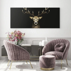 • A modern painting with a geometric deer on a contrasting black background, perfect for elegant and minimalist interiors.