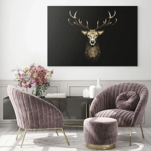 "Cubist Deer" is a modern painting distinguished by its geometric image of a deer, presented on a contrasting black background. Precise details and harmony of shapes create a unique decorative element that perfectly suits elegant and minimalist interiors.