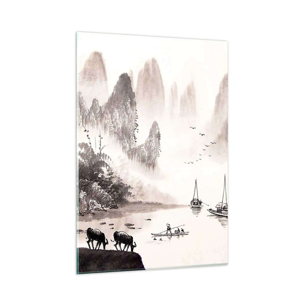 The glass picture is made from 4mm thick glass. The edges of the glass have a matte trapezoid cut. The picture is safe to use and ready to hang - it comes with metal hangers attached to the back of the picture and foam pads to ensure even distancing of the picture from the wall.