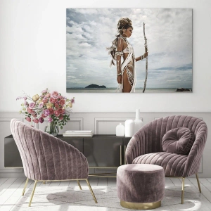 - This 70x50 cm glass painting depicts an exotic figure against a beach and sky background. This decoration brings a tropical atmosphere and unique style to any interior.