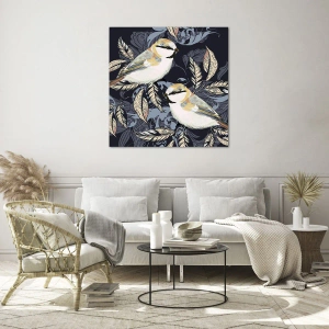 "Illustration of two birds on a dark background with ornaments" is the perfect proposition for those looking for a unique and stylish decoration. The glass painting from ARTTOR combines classic elegance with a modern finish, introducing harmony and a unique atmosphere to the interior.