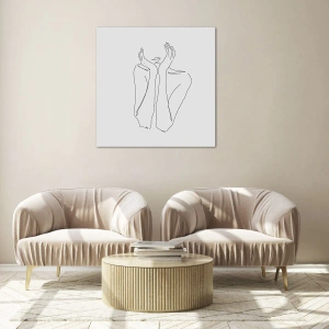- A delicate, minimalist drawing depicting a woman's hands and face in thin, linear lines. A subtle and elegant composition perfectly suited to both modern and classic interiors.