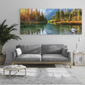 • Landscape, Mountains, Alps, Landscapes, Forests, Nature, For the office, For the study, For the dining room, For the bathroom, For the hall, For the living room, For the bedroom, Blue, Orange, Horizontal