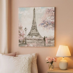 The canvas is stretched over the frame. The sides and edges of the picture are printed to form a continuation of the image. The painting is ready to hang on the wall. Each product comes with a hanger attached to the frame and a mounting kit (screw + wall plug).